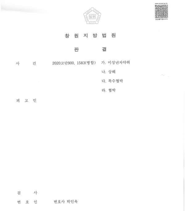 창원지방법원 2020고단900, 1583(병합) 미성년자 약취 등