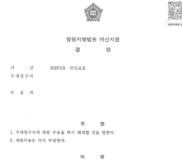1. 사안 창원지방법원 마산지원 2025인8 인신보호