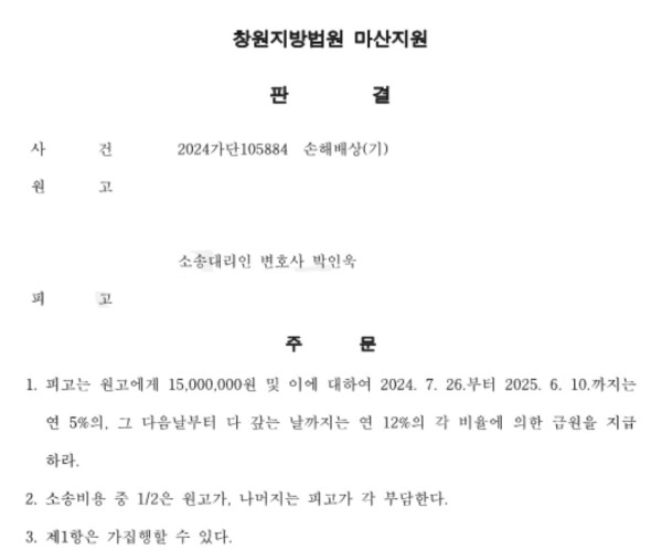 1.사안(창원지방법원 마산지원2024가단105884 손해배상(기))