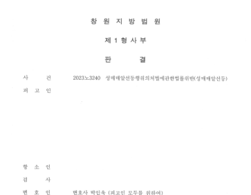 1.사안 창원지방법원 2023 노 3240 성매매알선등행위의처벌에관한법률위반 ( 성매매알선등 ) 피고인은 마사지방을 운영하며 성…