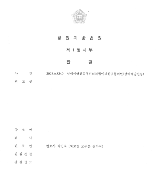 창원지방법원 2023노3240 성매매알선등행위의처벌에관한법률위반(성매매알선등)