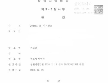 1. 사안 창원지방법원 2024노743 사기방조 피고인은 보이스피싱 조직의 지시를 받고 피해자들을 만나 현금을 수거하고 전달하는 역할을 하였습니다. 피…