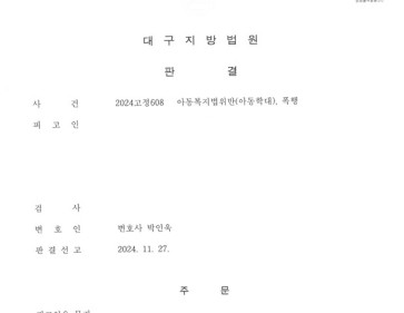 1. 사안 대구지방법원 2024고정608 아동복지법위반(아동학대), 폭행 마을회의 중 피고인은 온라인 커뮤니티 모임에서 알게 된 동호회원…