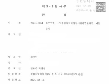 1. 사안 창원지방법원 2024노2053 특수협박, 스토킹범죄의처벌등에관한법률위반, 재물손괴 피고인은 교제하던 연인과 다툼이 있은 이후 경찰관으로부터 …