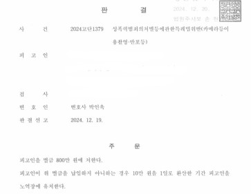 1. 사안 창원지방법원 2024고단1379 성폭력범죄의처벌에관한특례법위반(카메라등이용촬영·반포등) 피고인은 교제하던 연인의 신체를 몰래 촬영하고(성폭법…