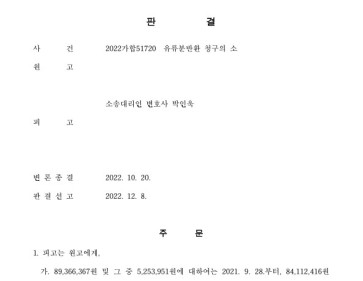 1. 사안 창원지방법원 2022나51977 채무부존재확인 본소, 2022나51984 양수금 반소 피고 측이 원고에게 송금한 것은 피고 1.의 지정에 의한…