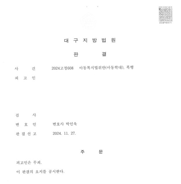 대구지방법원 2024고정608 아동복지법위반(아동학대), 폭행