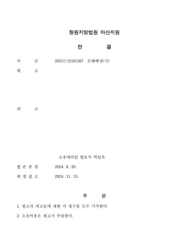 결과 피고의 부정행위 사실을 인정하기 어렵고, 소외인이 자신이 유부녀임을 속였다고 하고 있으므로 원고는 이 사건 부정행위를 하였음을 전제로 한 청구는 아무런 이유가 없어 기각하였습니다.