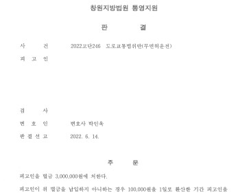1. 사안 창원지방법원 통영지원 2022고단246도로교통법위반(무면허운전) 피고인은 음주운전, 교통사고처리특례법(업무상과실치상) 항소심 재판을 받는 도중…