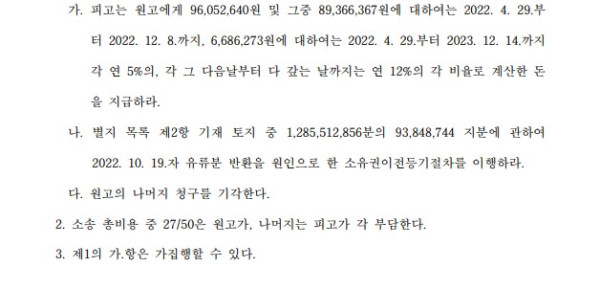 원고는 약 9,600만원 및 부동산 중 일부에 관하여 지분을 이전받는 내용으로 판결이 선고되었습니다.