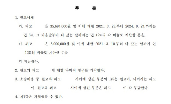 그 결과 일부 변제된 금원을 제외한 금원의 지급을 명하는 판결이 선고되었습니다.