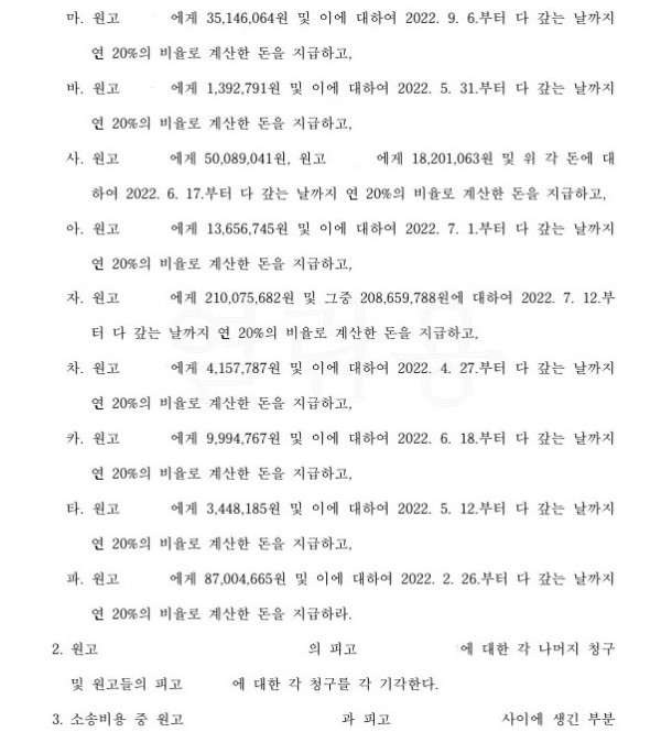 피고 1, 2에 대하여 각 원고들에 대한 변제충당 후 남은 금원에 대하여 지급을 명하는 판결이 선고되었습니다.
