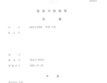 1. 사안 창원지방법원 2022고정466 폭행, 모욕(항소심 2023노2864) 피고인은 고소인의 남편이 운영하는 공인중개사 사무실을 통하여 아파트 전…