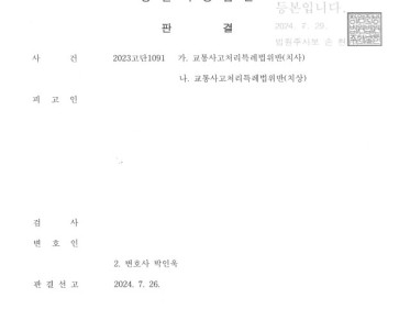 1. 사건의 내용 창원지법 2023고단1091 교통사고처리특례법위반(치사) 피고인은 비보호좌회전 교차로에서 전방, 좌우를 살피지 않고 비보호 좌회전하여 …