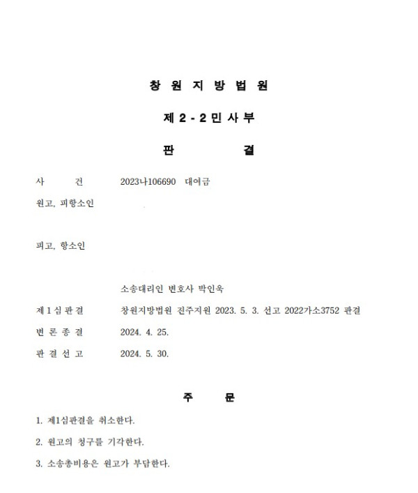 원고는 피고에게 금원을 대여했다고 주장하며 대여금 반환청구 소소을 제기하였는데 피고가 1심에서 제대로 대응하지 못하여 원고 청구를 전부 인용하는 판결이 선고되었습니다.