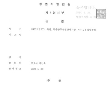 1. 사건 창원지방법원 2023고합333 폭행, 특수공무집행방해치상, 특수공무집행방해 피고인은 노인 보호소에서 타인과 시비하던 중 출동한 경찰관에게 …