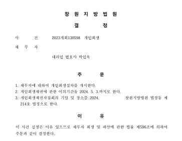 1. 신청인은 총 채무 181,396,392원으로 사업 경영 실패로 인하여 큰 채무를 부담하 게 되었습니다. 2. 신청인의 소득과 경제 상황에 따른 …
