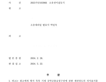 1. 사안 창원지방법원 마산지원 2023가단103966 소유권이전등기 원고는 종중으로 피고는 원고의 종중원입니다. 원고는 이 사건 부동산에 관하여 …