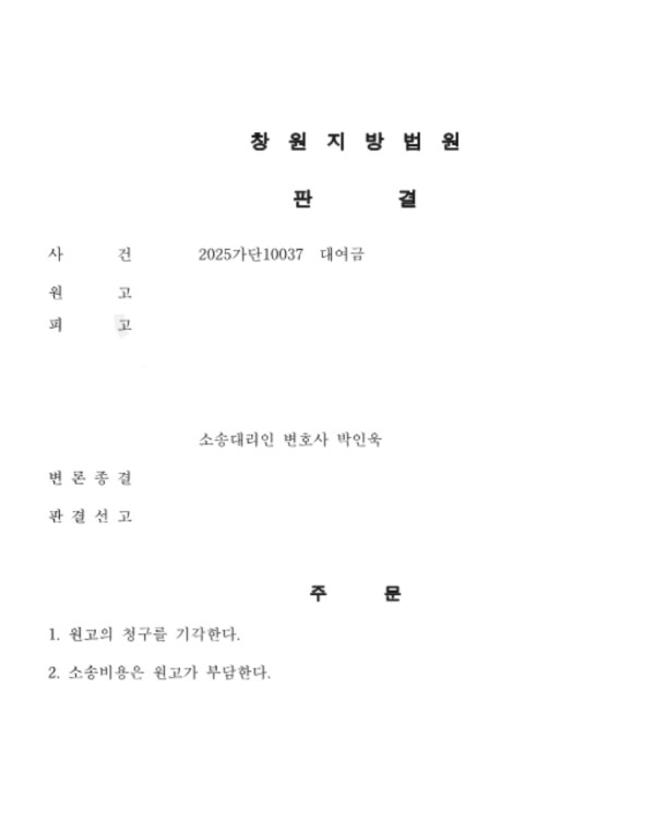 1.사안(창원지방법원2025가단10037 대여금)