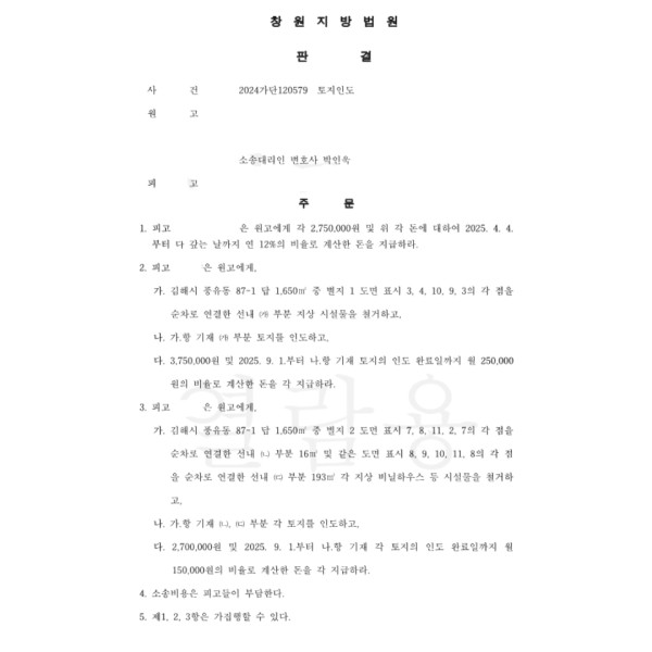 민사 합천변호사 | 시설물 철거, 토지인도, 임료상당부당이득 승소사례