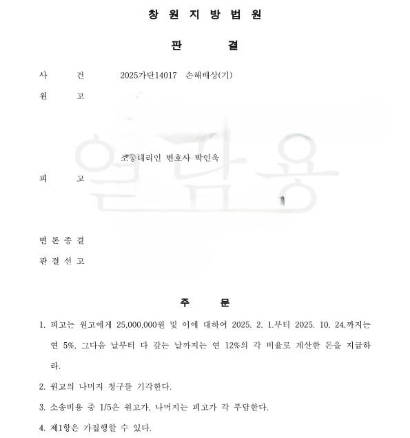(창원지방법원 2025가단14017 손해배상(기))