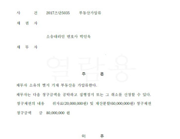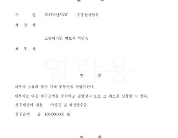 ▣ 사건번호 2017카단5307 부동산가압류 ▣ 사안(약정금 및 채권양수금) 채권자와 채무자는 기타(금전)사건의 판결에 따라 조건부 …