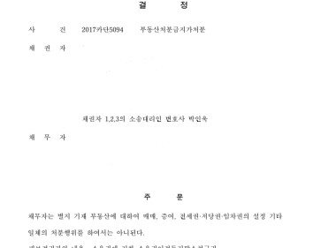 ▣ 사건번호 2017카단5094 부동산처분금지가처분 ▣ 사안(소유권에 기한 소유권이전등기말소청구권) 채권자들은 채무자와의 명의신탁약정을 체결하여…
