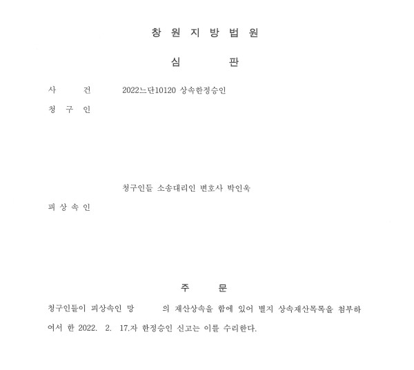 창원지방법원 2022느단10120 상속한정승인