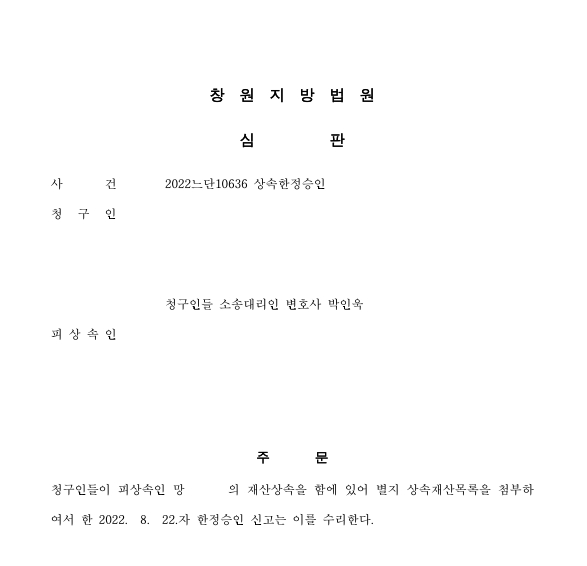 창원지방법원 2022느단10636 상속한정승인