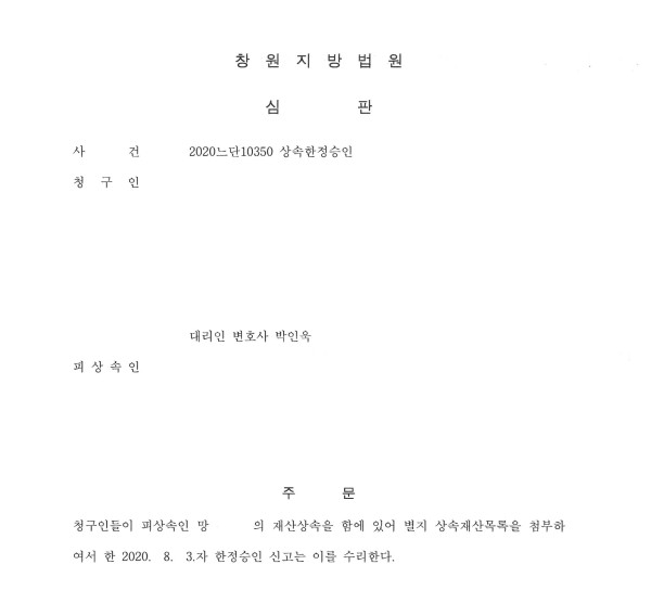 창원지방법원 2020느단10350 상속한정승인