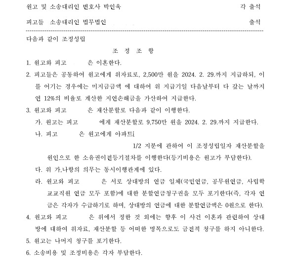 원고는 배우자와 상간남을 피고로 하여 이혼, 피고들의 원고에 대한 공동불법행위를 원인으로 위자료청구를 제기하였고, 피고인 배우자 측은 부정행위를 부인하고, 재산분할을 구하며 조정에 임하였습니다.