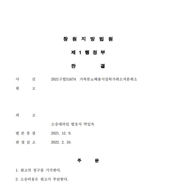 원고는 토끼를 사육하였는데 이를 두고 가축분뇨의 관리 및 이용에 관한 법률상 정당한 사유 없이 가축사육을 하지 아니한 경우에 해당하는지, 원고가 건강상의 이유로 사육을 하지 못한 것이 정당한 사유가 있는 것인지 여부가 문제되었습니다.