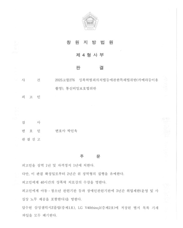 창원지방법원 2025고합276 성폭력범죄의처벌등에관한특례법위반(카메라등이용촬영), 통신비밀보호법위반