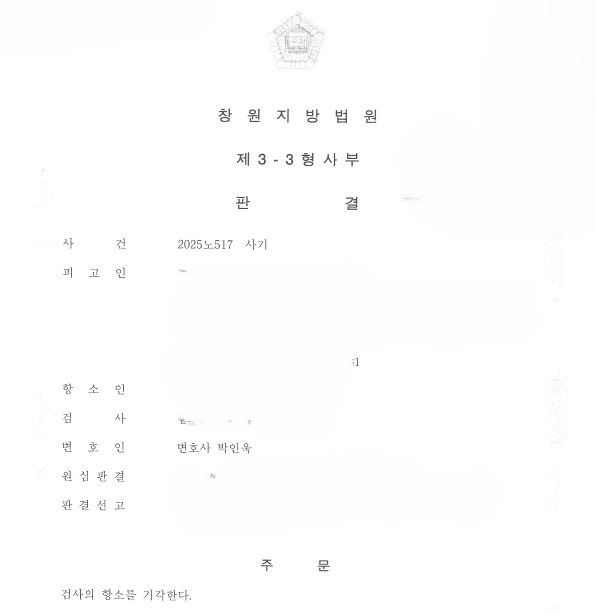 그 결과 원심판결 그대로 피고인에 대한 무죄판단이 유지되어 검찰의 항소는 기각되었습니다.