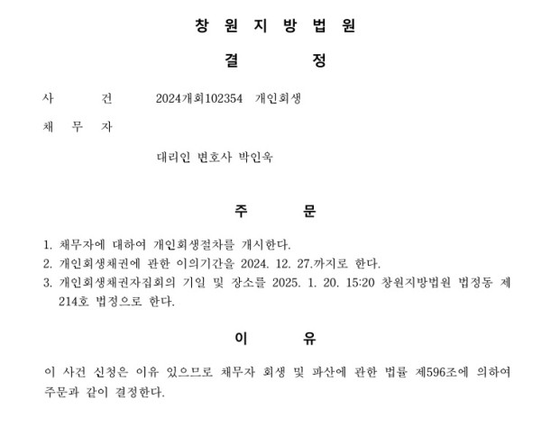 개인사업자 파산선고 결정 성공사례