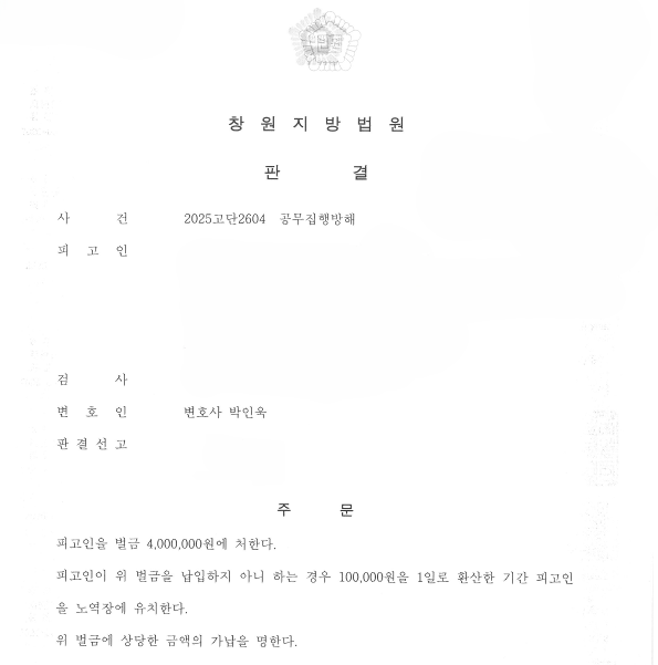 (창원지방법원 2025고단2604 공무집행방해)
